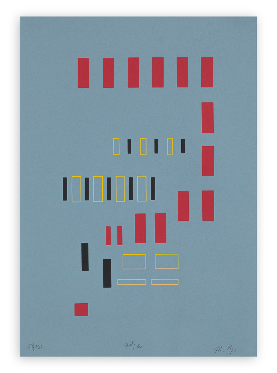 Opera originariamente parte della cartella: 'Mario Nigro. 10 opere grafiche dal 1948 al 1955' con testo di presentazione di Luciano Caramel e 10 litografie a colori di Mario Nigro