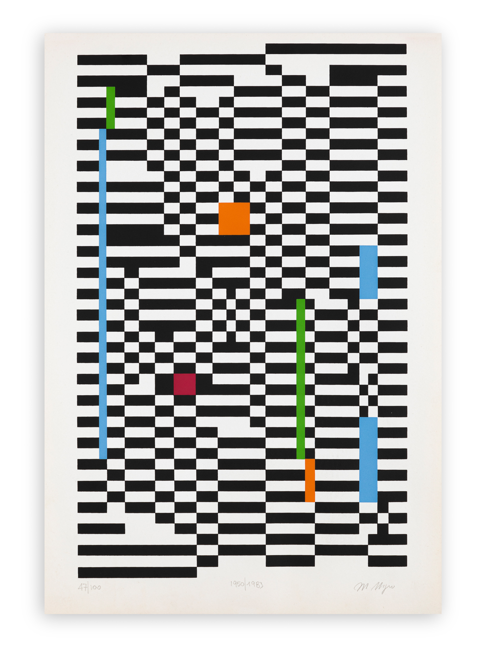 Opera originariamente parte della cartella: 'Mario Nigro. 10 opere grafiche dal 1948 al 1955' con testo di presentazione di Luciano Caramel e 10 litografie a colori di Mario Nigro
