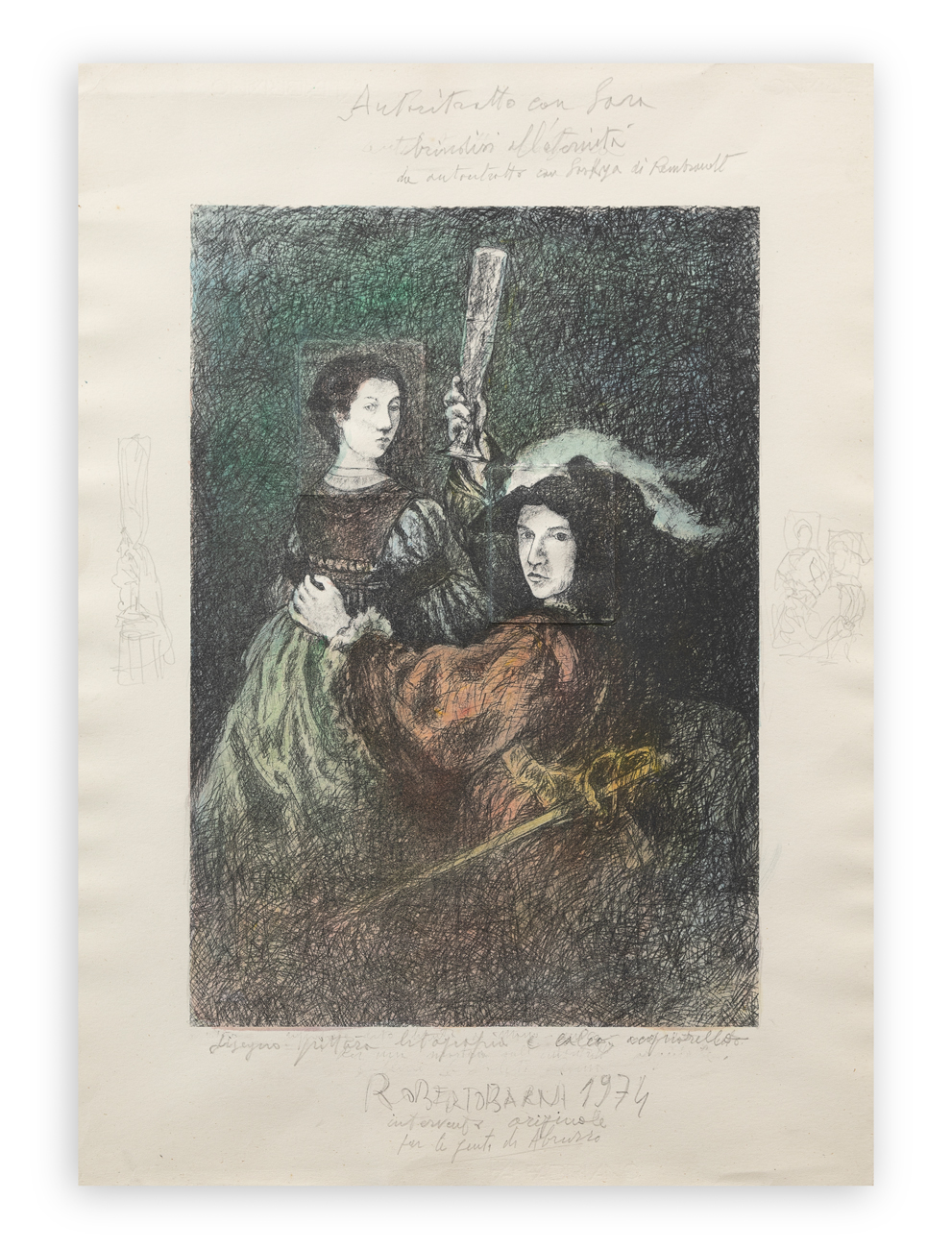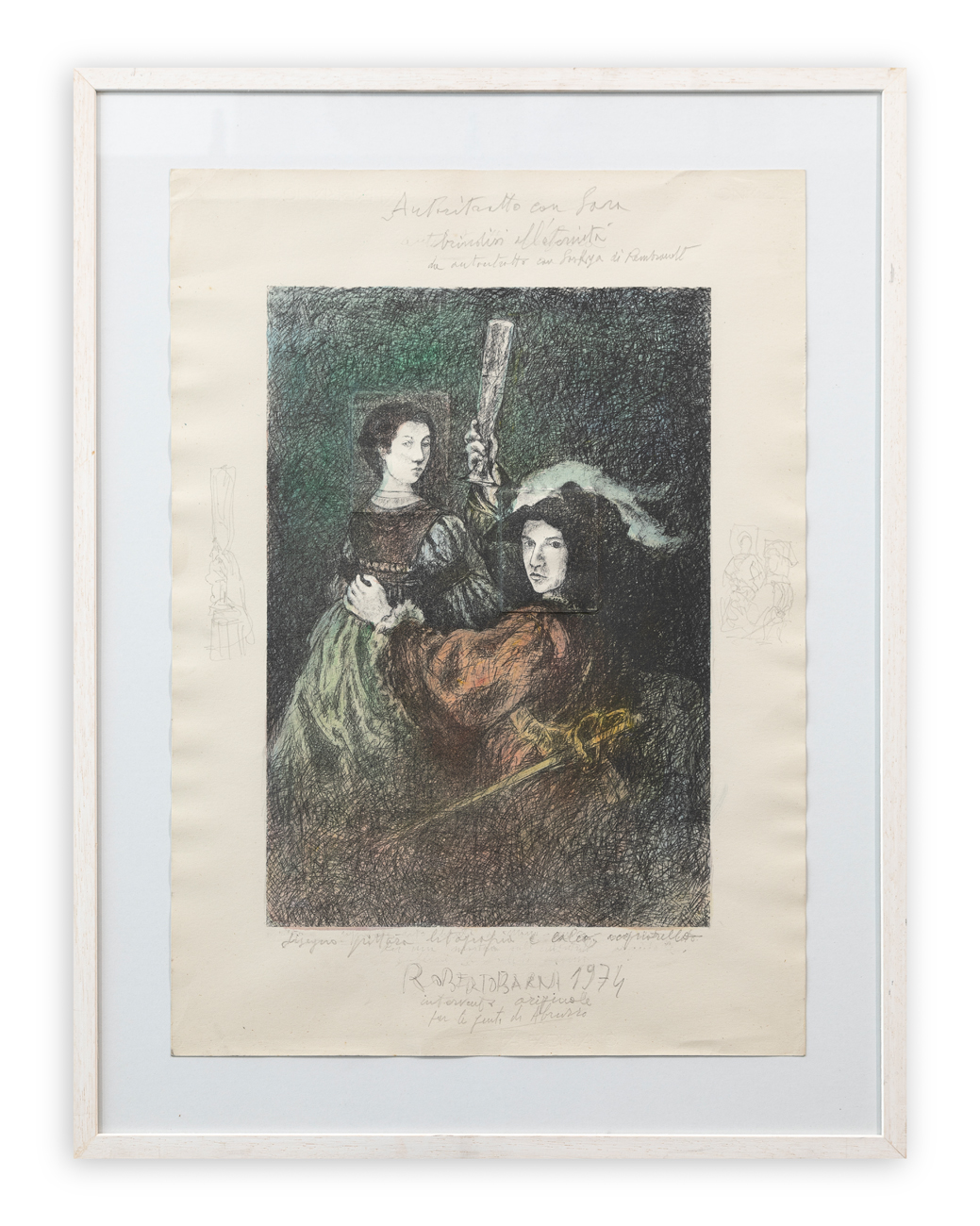 ROBERTO BARNI (1939) - Autoritratto con Sara. Brindisi all’eternità, da Autoritratto con Saskia di Rembrandt, 1974