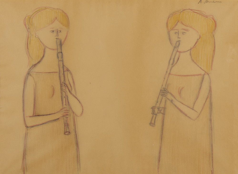 BUENO ANTONIO (1918 - 1985) CONCERTINO (1974). 1974. Matita e pastello su carta. Cm 40,00 x 30,00. firma