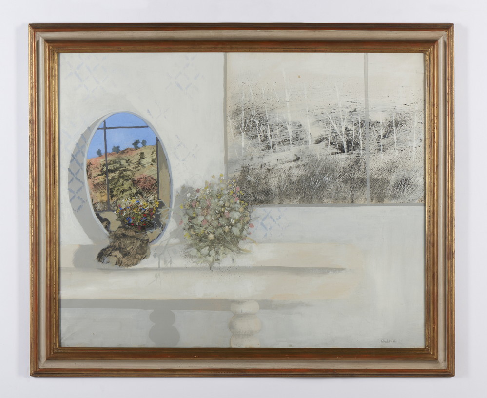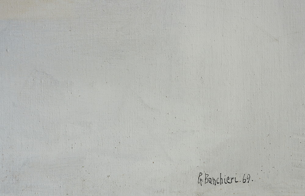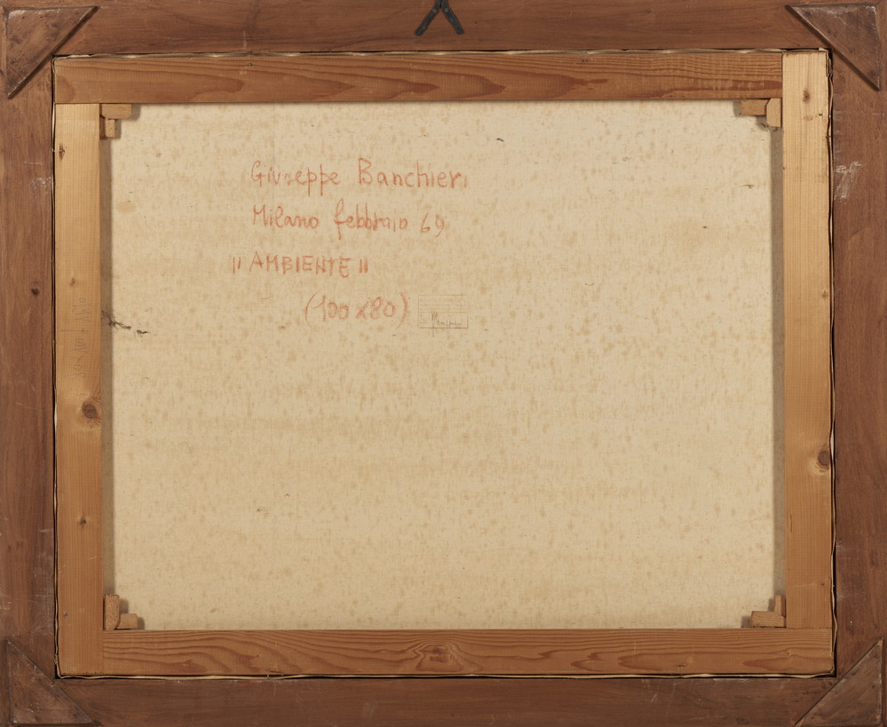 BANCHIERI GIUSEPPE (1927 - 1994) AMBIENTE. 1969. Olio su tela. Cm 100,00 x 80,00. firma e data