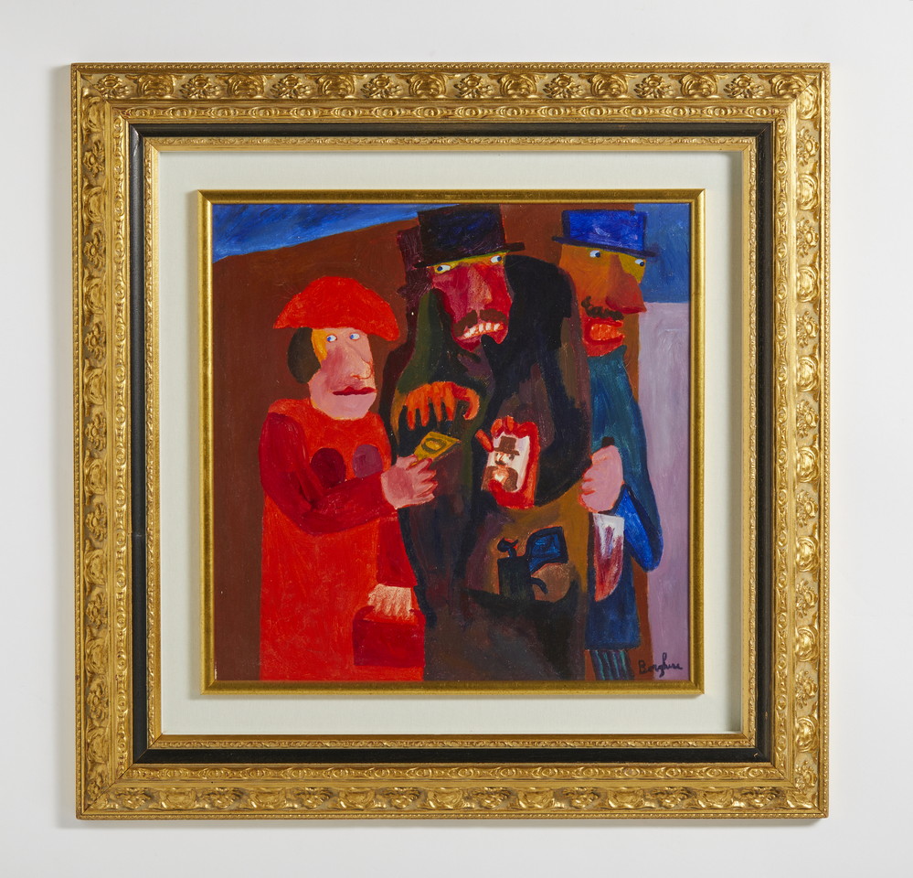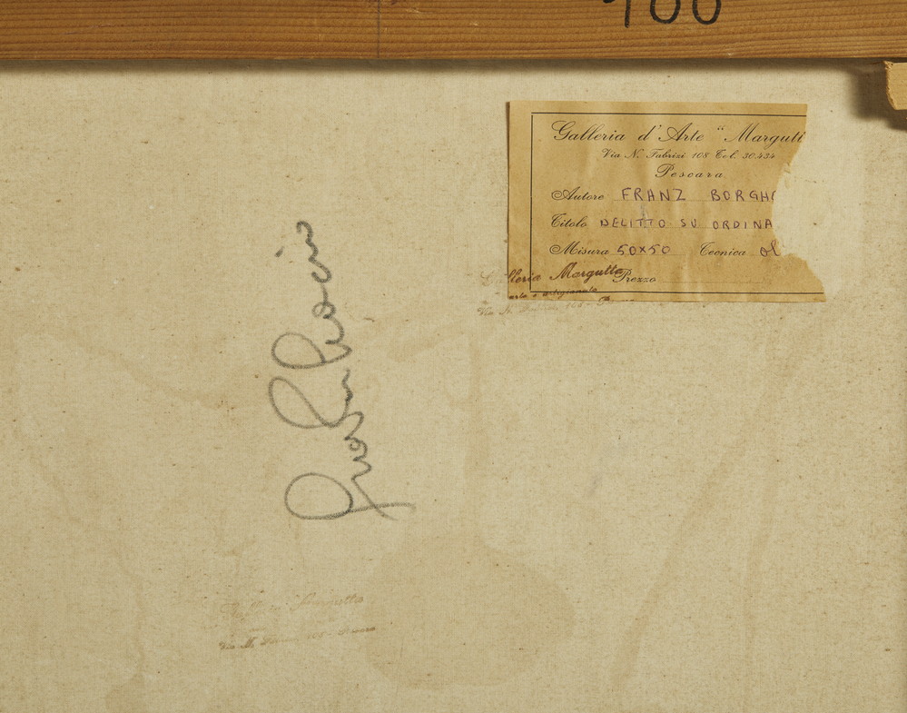 BORGHESE FRANZ (1941 - 2005) DELITTO SU ORDINAZIONE. 1960. Olio su tela. Cm 50,00 x 50,00. firma