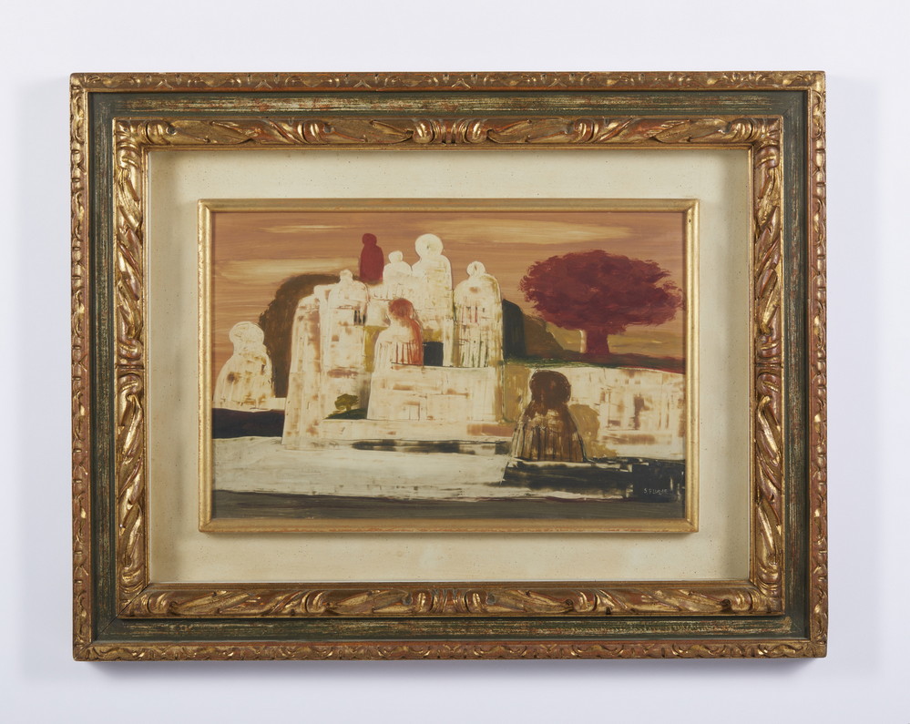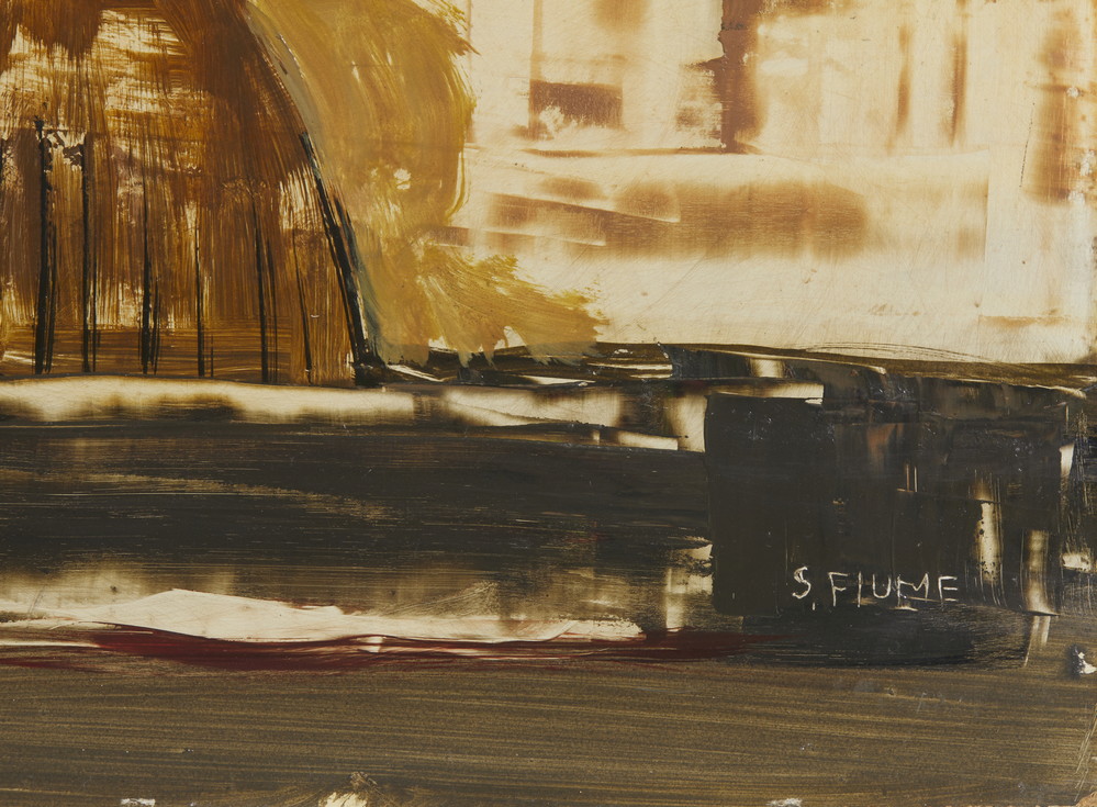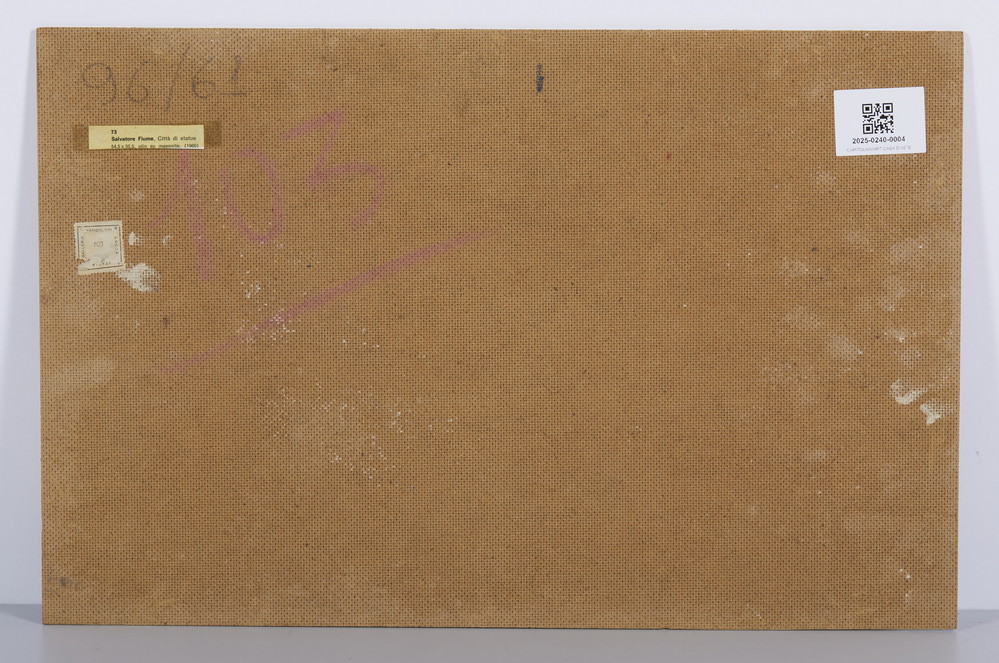 FIUME SALVATORE (1915 - 1997) CITTA' DI STATUE. 1960. Olio su masonite. Cm 54,50 x 35,50. firma