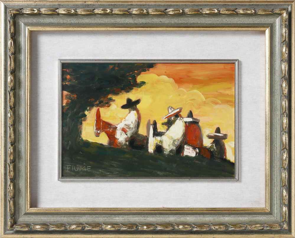 FIUME SALVATORE (1915 - 1997) MESSICANI. Olio su masonite. Cm 45,00 x 30,00. firma