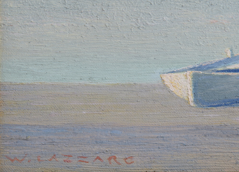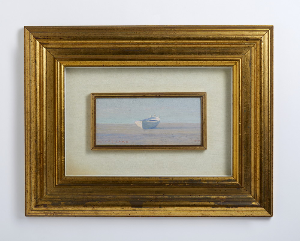 LAZZARO WALTER (1914 - 1989) BARCA BIANCA. 1977. Olio su cartone telato. Cm 24,30 x 11,30. firma e data