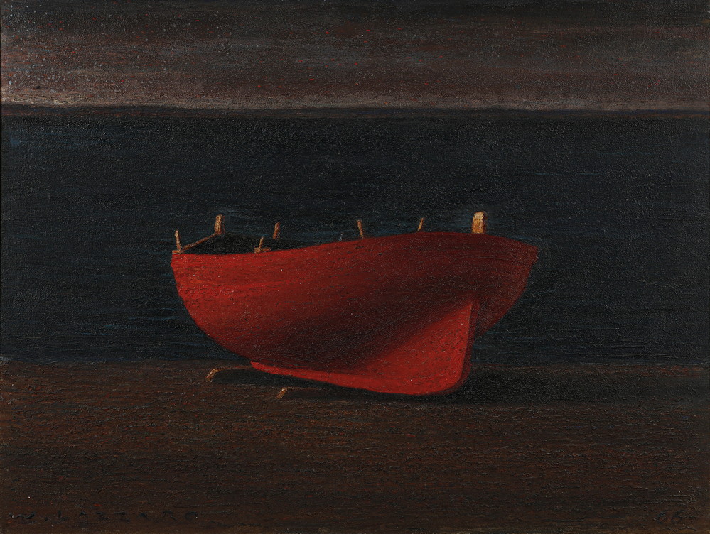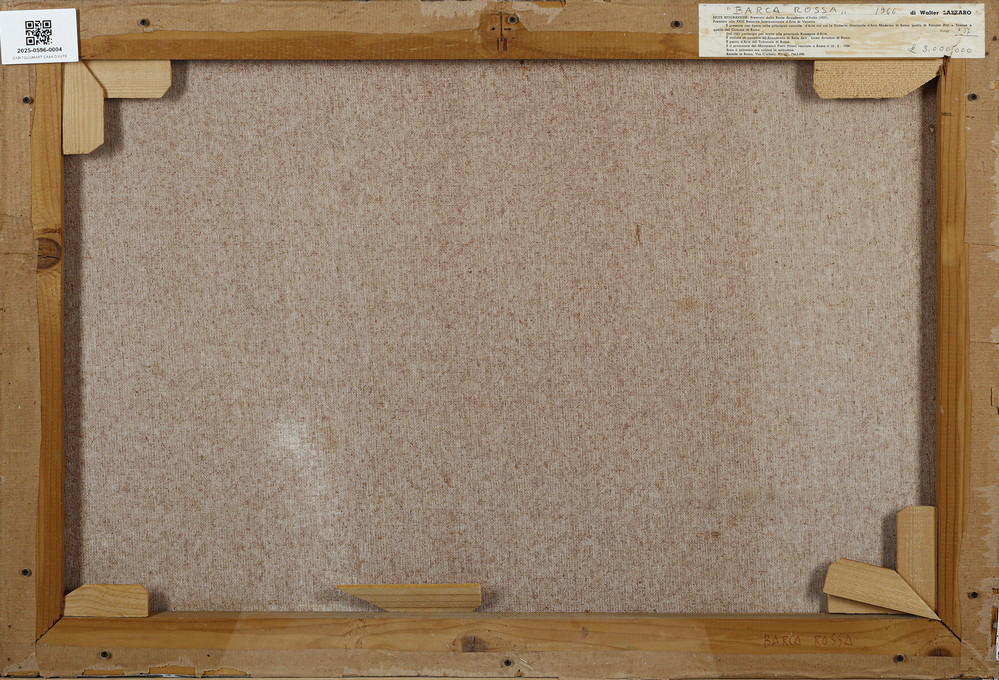 LAZZARO WALTER (1914 - 1989) BARCA ROSSA. 1966. Olio su tela. Cm 70,00 x 50,00. firma e data