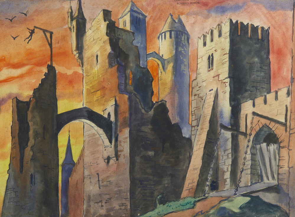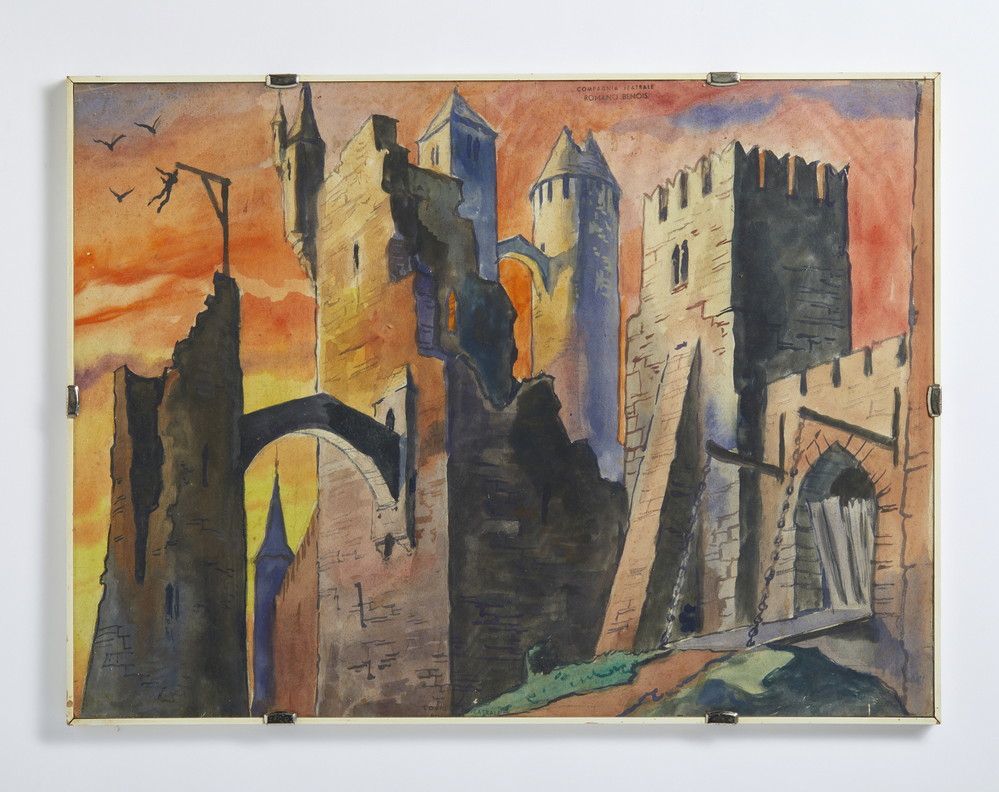 BENOIS NIKOLAJ ALEKSANDROVIC (1901 - 1988) SENZA TITOLO (SCENOGRAFIA TEATRALE). acquarello su carta. Cm 64,00 x 47,50. timbro Compagnia teatrale Romano Benois