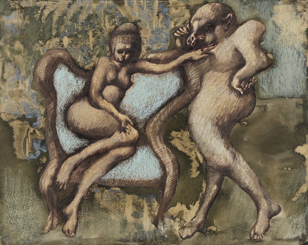 LEBENSTEIN JAN (1930 - 1999) COLLOQUIO. 1969. tecnica mista su carta. Cm 62,00 x 48,00. firma, data