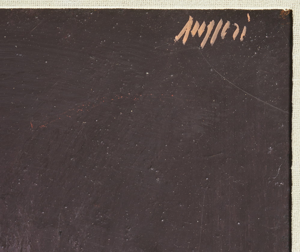 RUGGERI PIERO (1930 - 2009) FIGURA. 1960. olio su faesite. Cm 60,00 x 70,00. firma