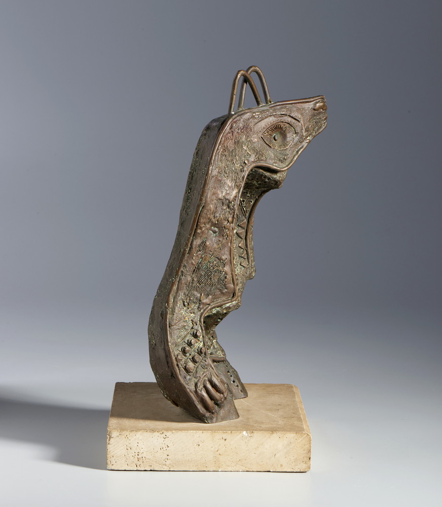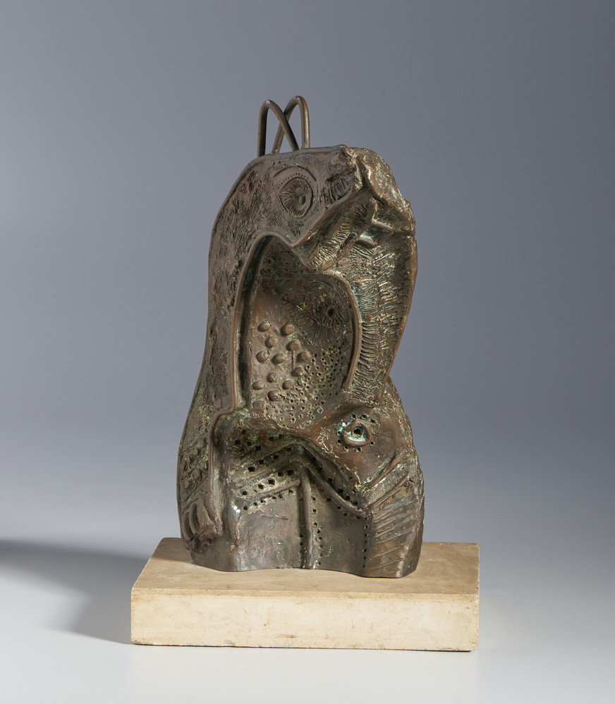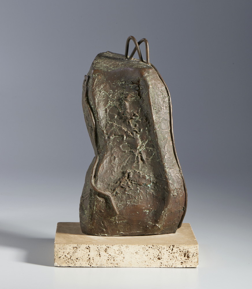LOPES BERTINA (1924 - 2012) SENZA TITOLO. Bronzo e travertino.. Cm 31,00 x 50,00 x 25,00. scultura senza base: 44,5x23x14,5