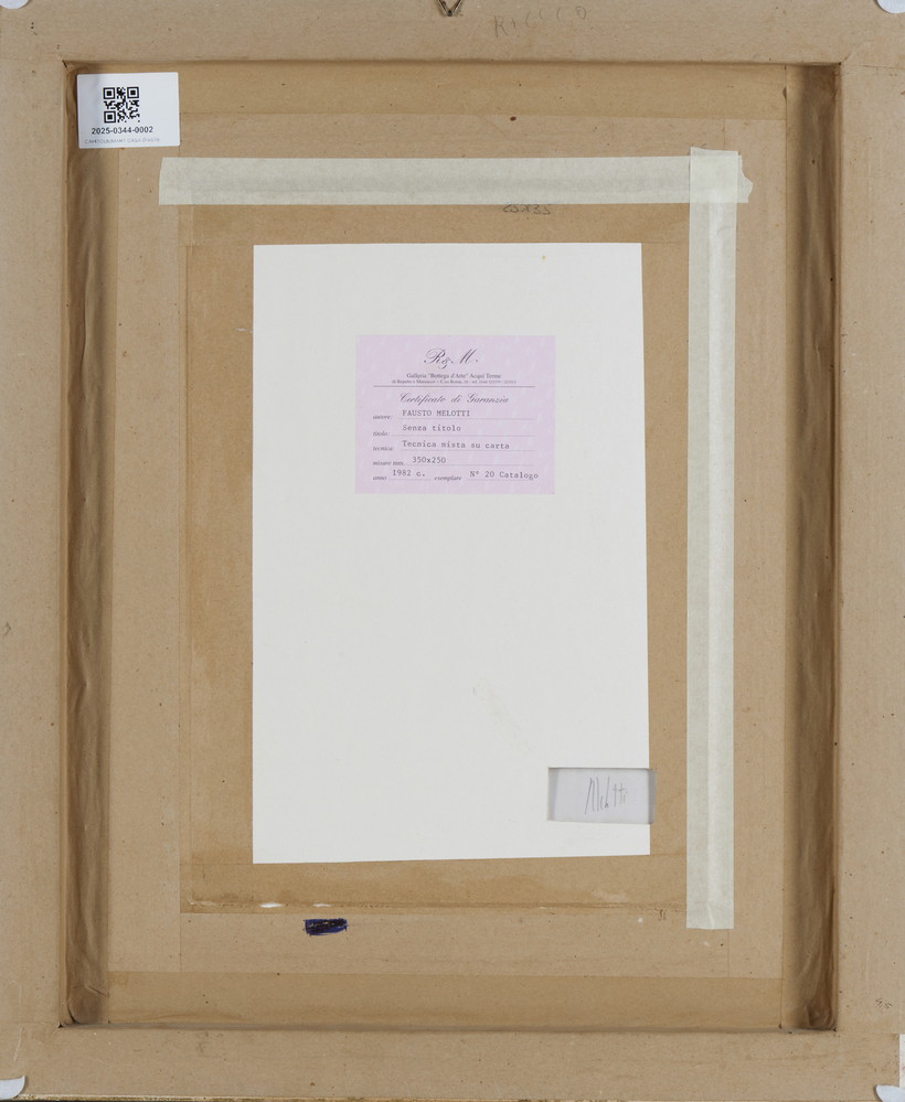 MELOTTI FAUSTO (1901 - 1986) SENZA TITOLO (1982). tecnica mista su carta. Cm 25,00 x 35,00. sul retro: firma ed etichetta Galleria Bottega dell'Arte, Acqui Terme