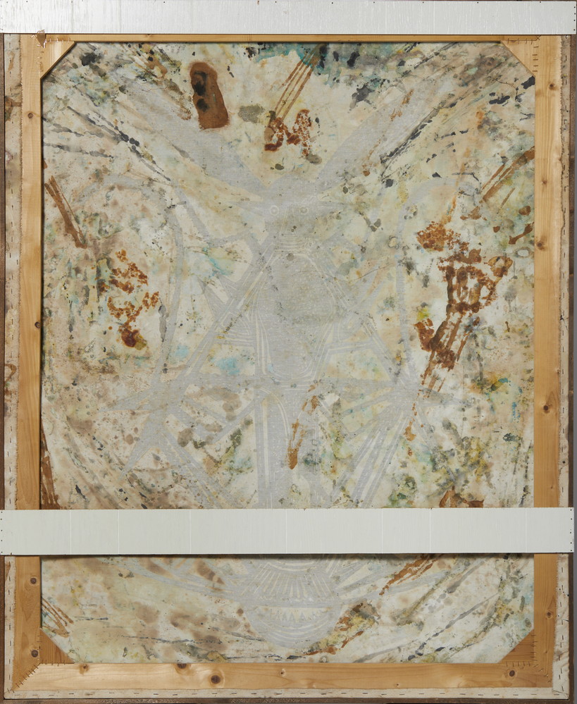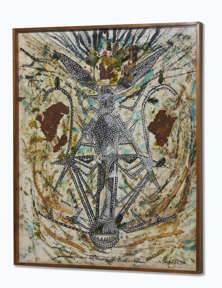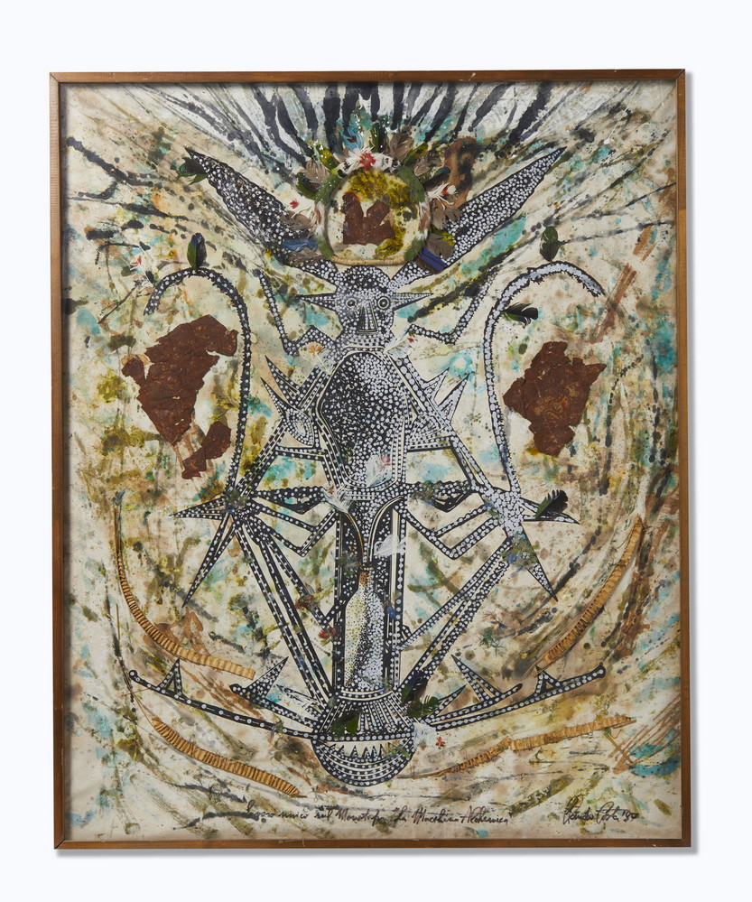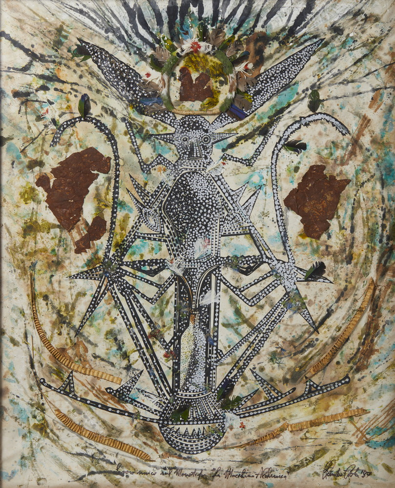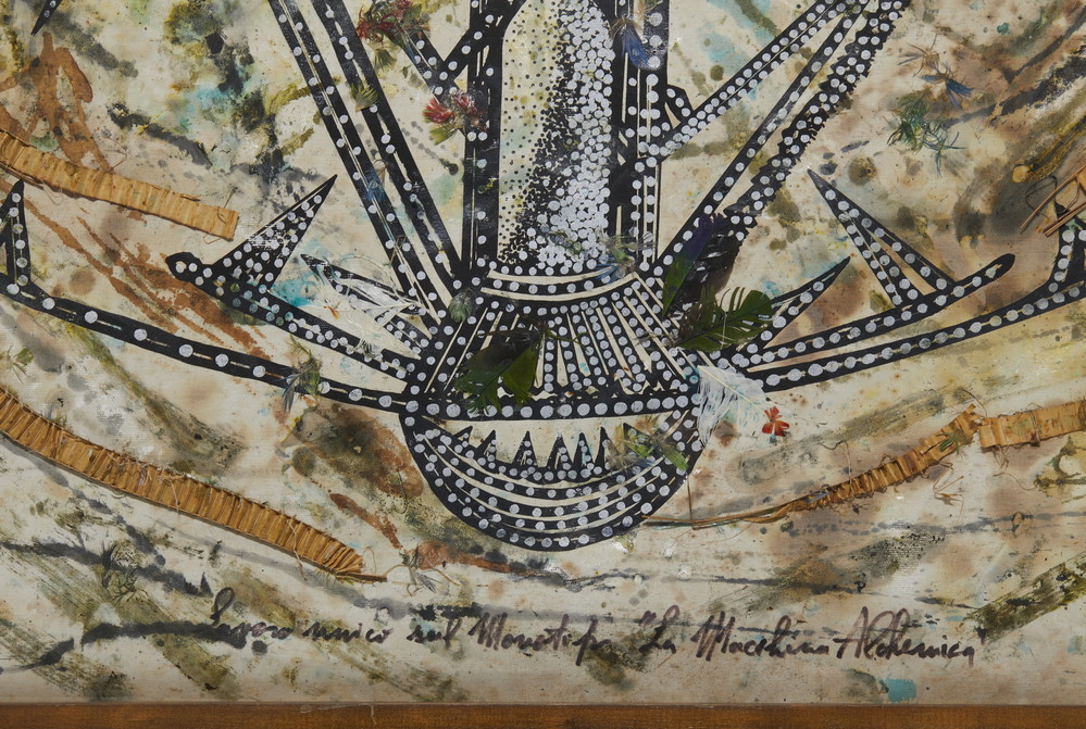 COSTA CLAUDIO (1942 - 1995) LAVORO UNICO SU MONOTIPO LA MACCHINA ALCHEMICA, 1997. Tecnica mista su tela. Cm 119,50 x 147,50. firma, data, titolo