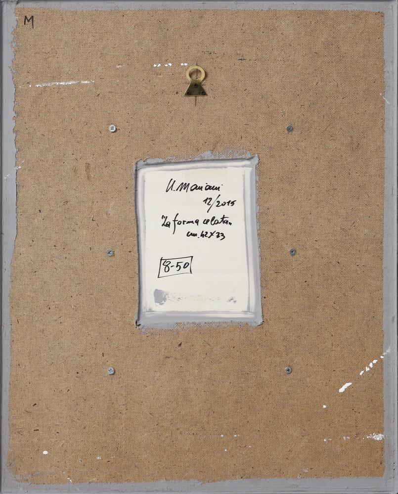 MARIANI UMBERTO (n. 1936) LA FORMA CELATA . 2015. acrilici su piombo operato applicato su tavola. Cm 33,00 x 42,00. sul retro: firma, data, titolo