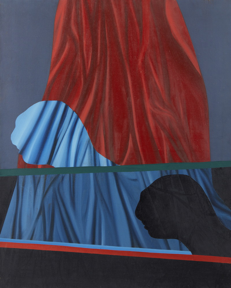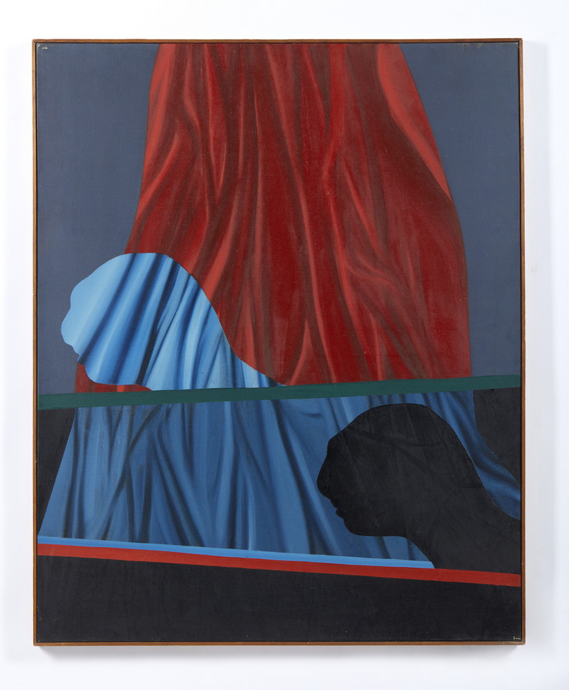 RECALCATI ANTONIO (n. 1938) TEATRALE . 1967. Olio su tela. Cm 81,00 x 100,00. sul retro: firma, data e titolo