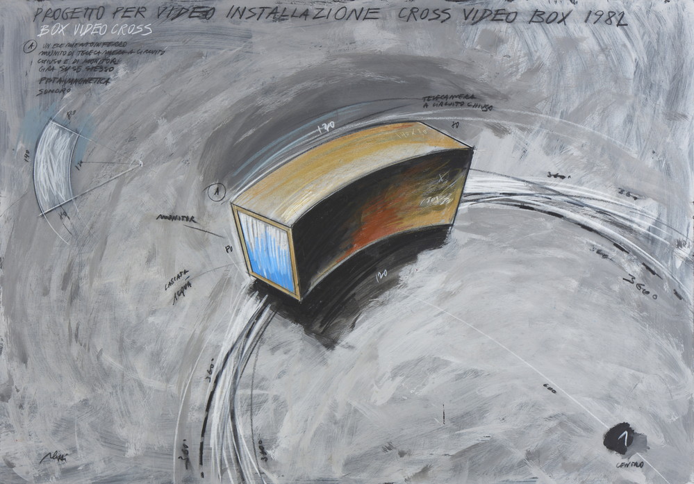 PLESSI FABRIZIO (n. 1940) 1° IDEA GERMINALE PER VIDEO GOING. 1982. tecnica mista su cartoncino. Cm 100,00 x 70,00. firma, data e titolo