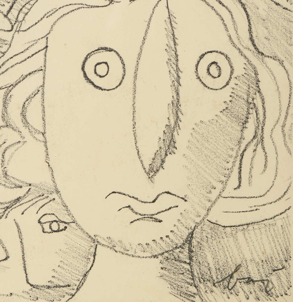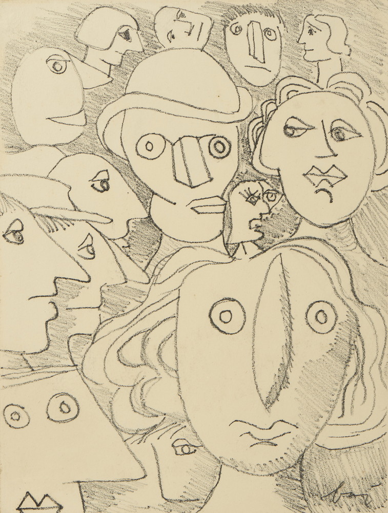 BAJ ENRICO (1924 - 2003) GRUPPO DI TESTE (STUDIO PER ACQUAFORTE). grafite su cartoncino. Cm 19,50 x 25,80. firma