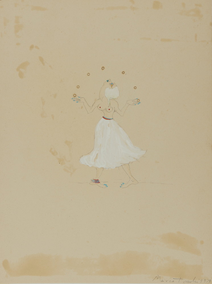 TIRELLI MARCO (n. 1956) LA GIOCOLIERA . 1979. tecnica mista su cartoncino. Cm 24,00 x 32,00. firma e data