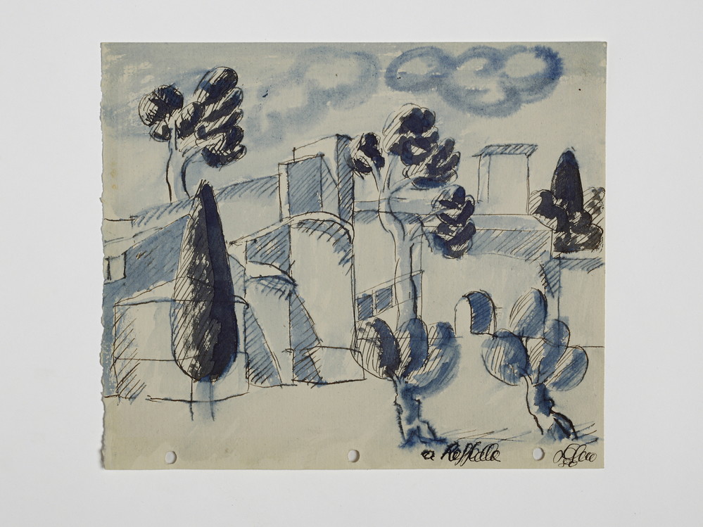 (SALVATORE MANGIONE) SALVO (1947 - 2015) SENZA TITOLO. 1980. biro e acquarello su carta. Cm 24,20 x 20,20. firma e dedica ad personam