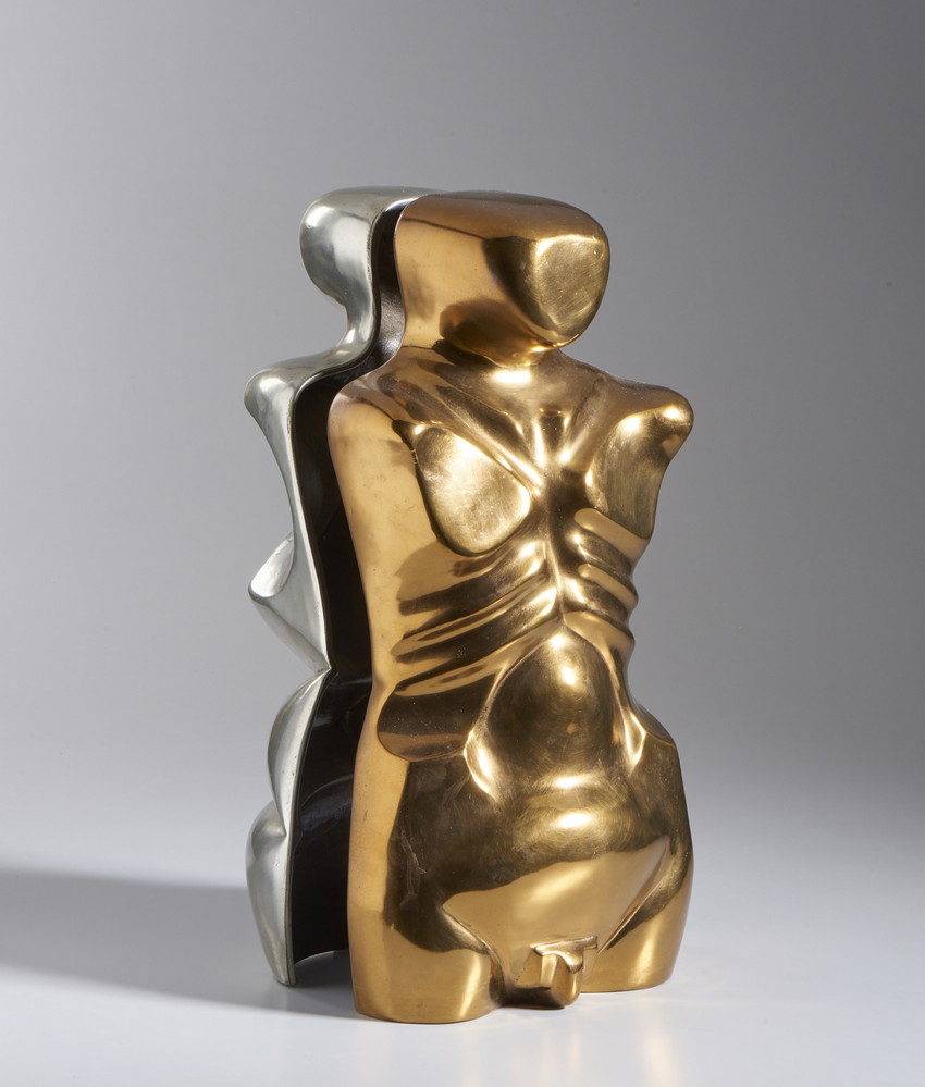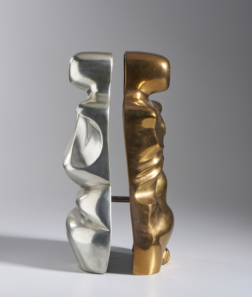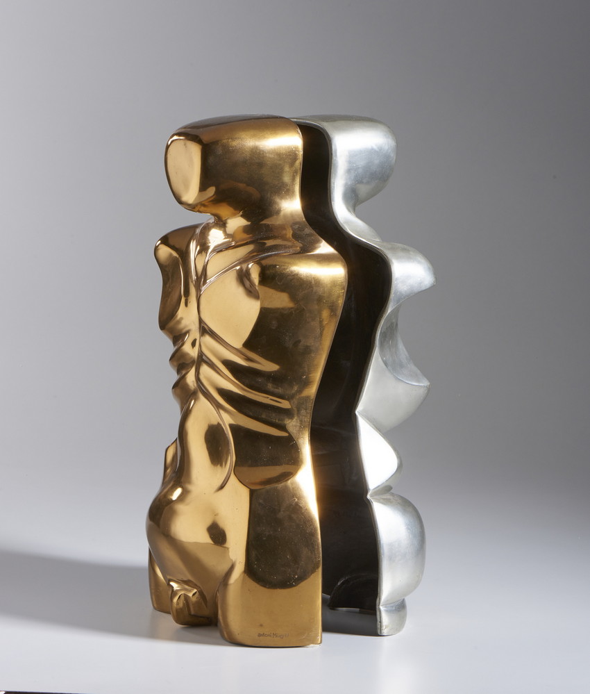 MIRO' ANTONI (n. 1944) EL MATRIMONI. 1973. Bronzo e alluminio. Cm 29,00 x 58,00 x 31,00. firma, data e tiratura, es. 4/9.