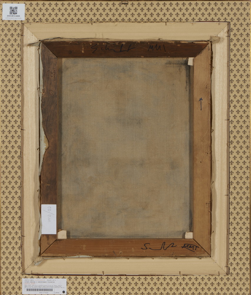 L'opera è accompagnata dall'autentica dell'artista su fotografia riportante il timbro il della Galleria Franco Cancelliere, Messina