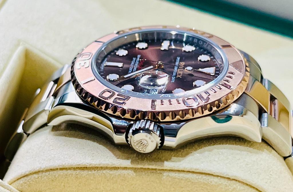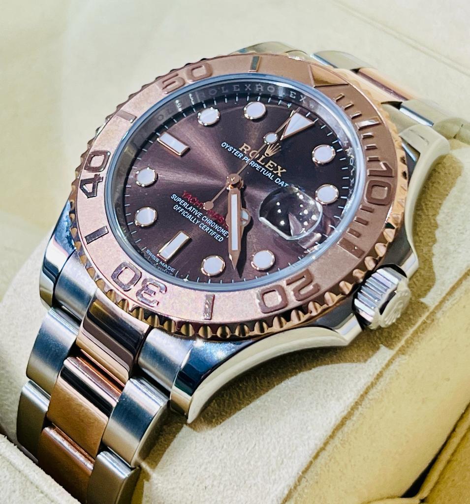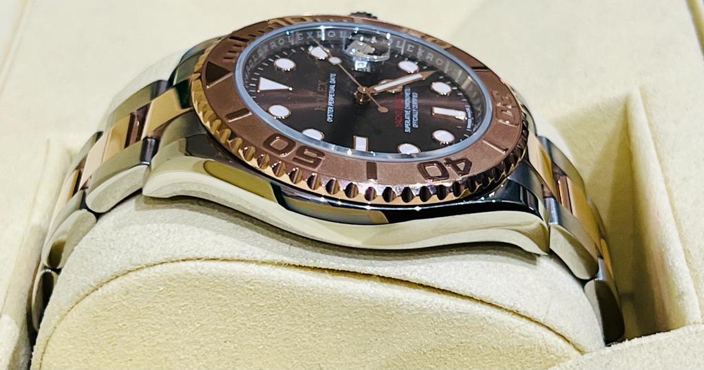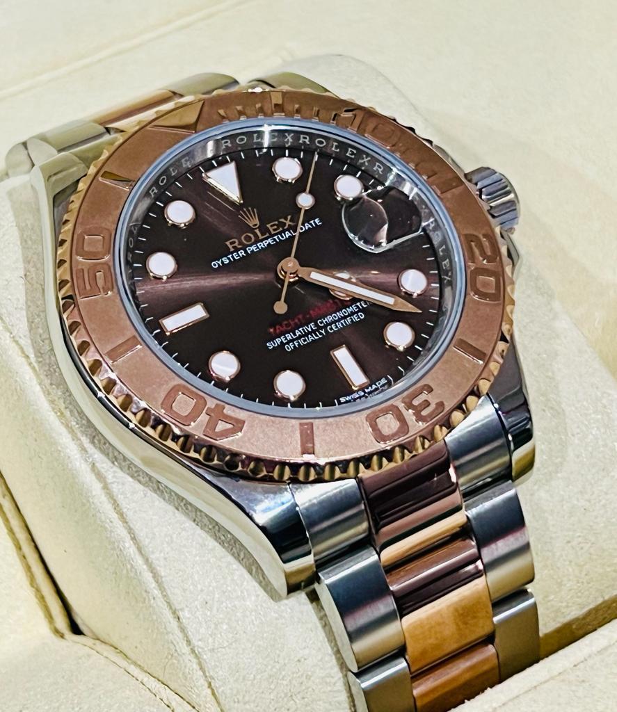 Marca Rolex Modello (Orologio) Yacht-Master 40 Numero di referenza 116621 Carica Automatico Materiale cassa acciaio / Oro rosa Anno di produzione 2020 Condizione Usato (Ottimo) L'articolo presenta segni di usura lievi, come ad esempio graffi leggeri, ma non percepibili al tatto. documenti originali, no box, la scatola viene utilizzata solo per fotografie non è in vendita Cassa Diametro 40 mm Impermeabile 10 ATM Quadrante Marrone Cinturino Materiale cinturino acciaio / Oro rosa