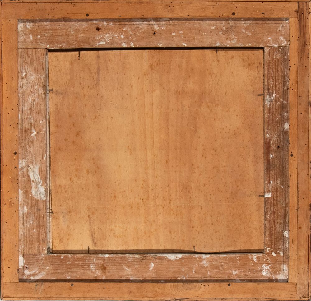 Buone condizioni, cornice e vetro. Presenza di due fori nella carta.