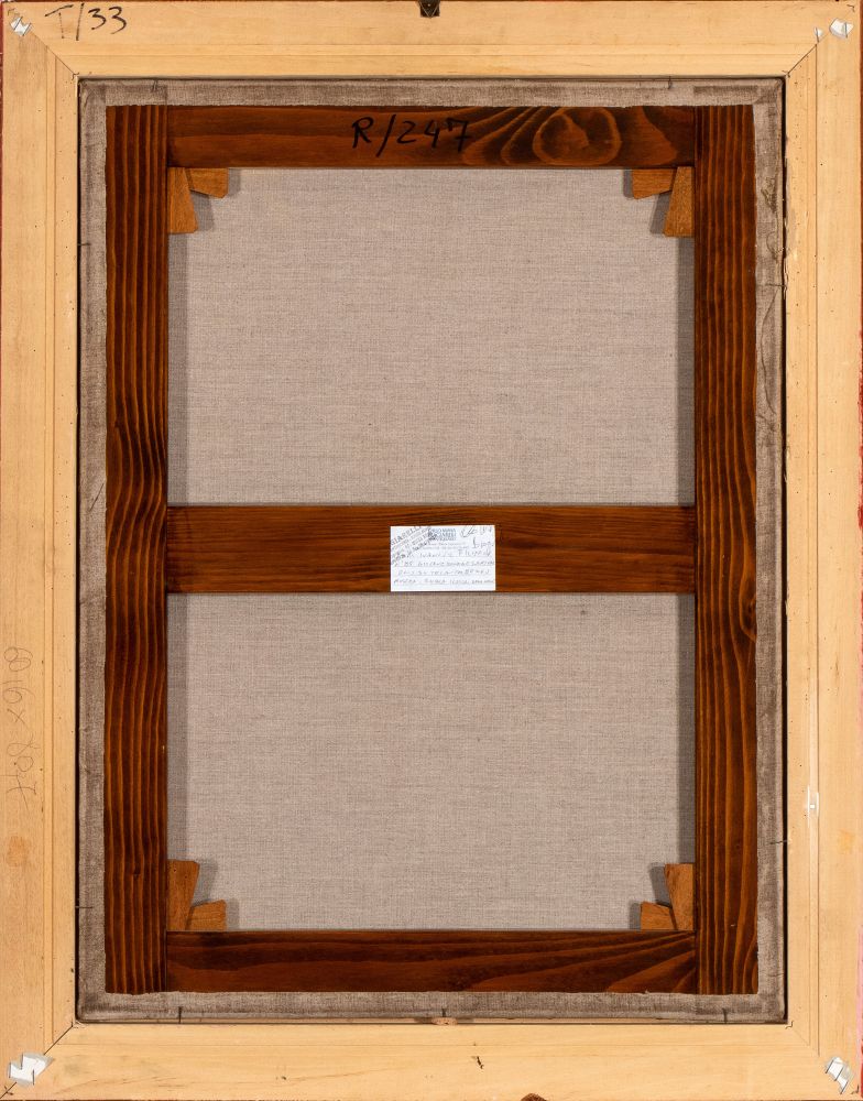Firmato in basso a destra. Al retro etichetta di Carlo Maria Biagiarelli Antiquario, Roma