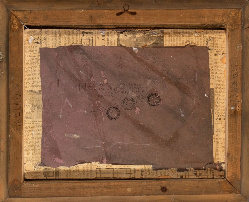 Buone condizioni, cornice senza vetro. Piccola caduta di colore in basso a sinistra.
