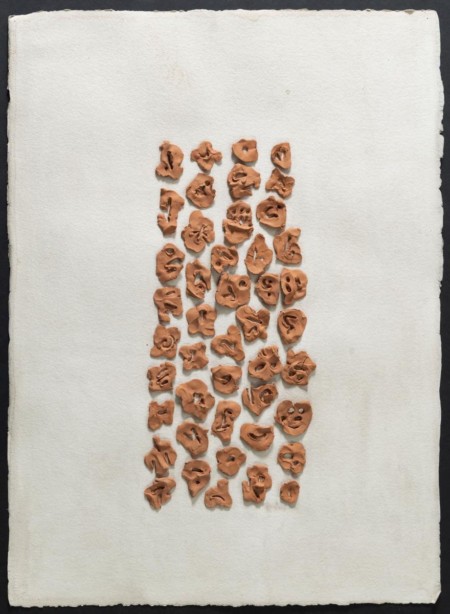 Tecnica mista e terracotta su cartone, firmata in basso a destra, H cm 76x57