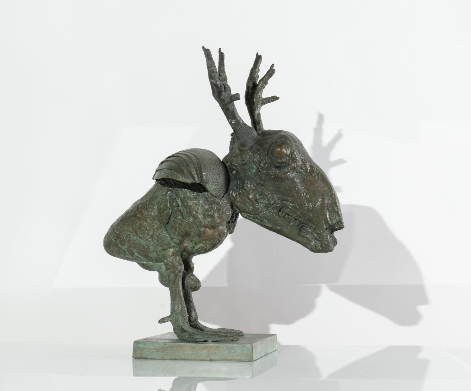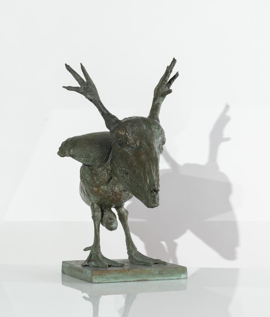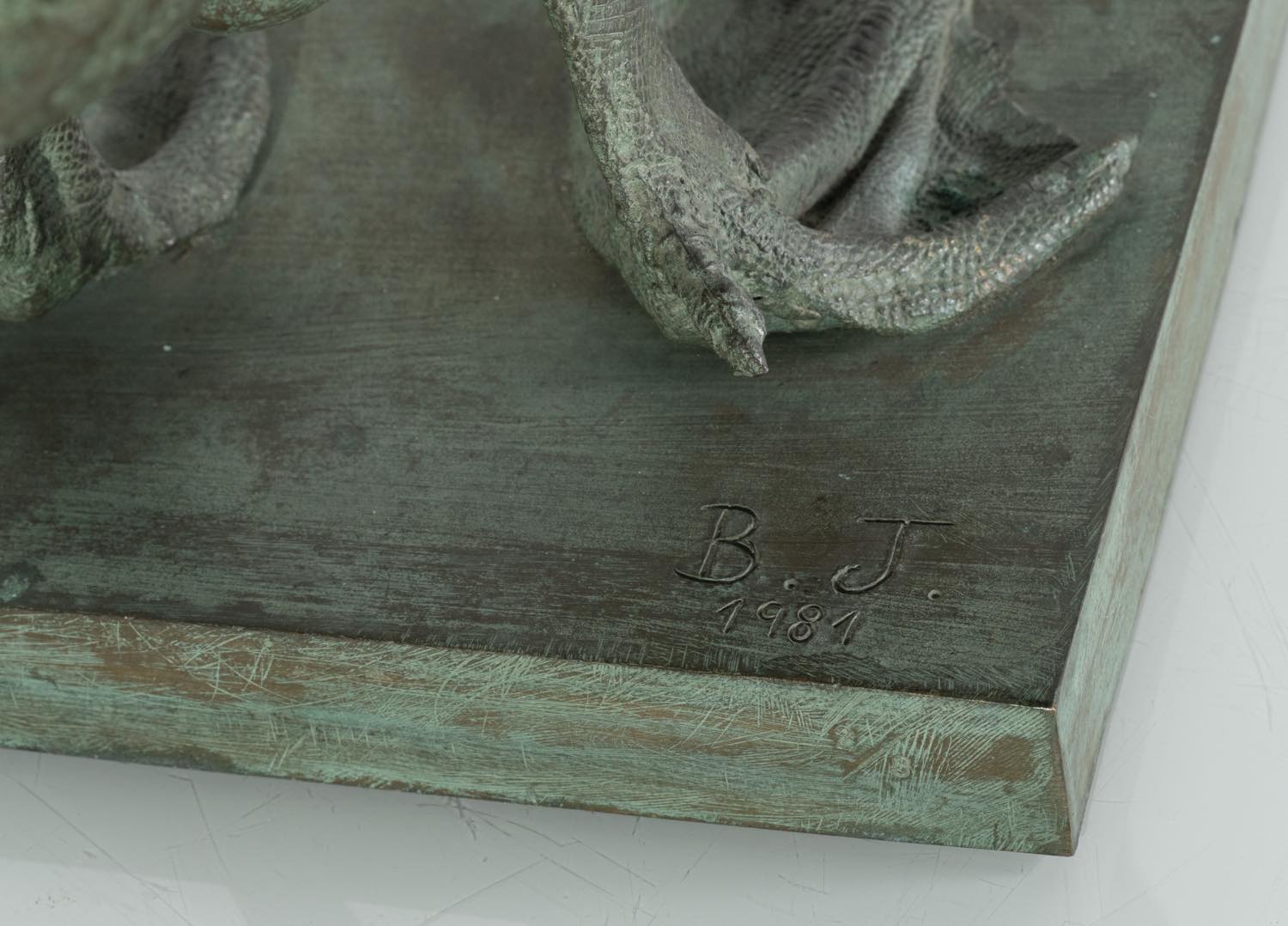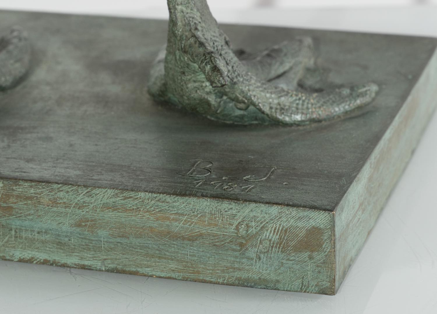 Scultura in bronzo, alla base reca firma e data B.J. 1981, a lato reca numero di esemplare 2/6, H cm 45x23x37