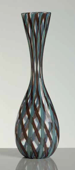 Fulvio Bianconi e Paolo Venini Vaso in vetro a canne policrome incrociate, della serie “Scozzesi” circa 1957, altezza cm 37. Reca vecchia etichetta.