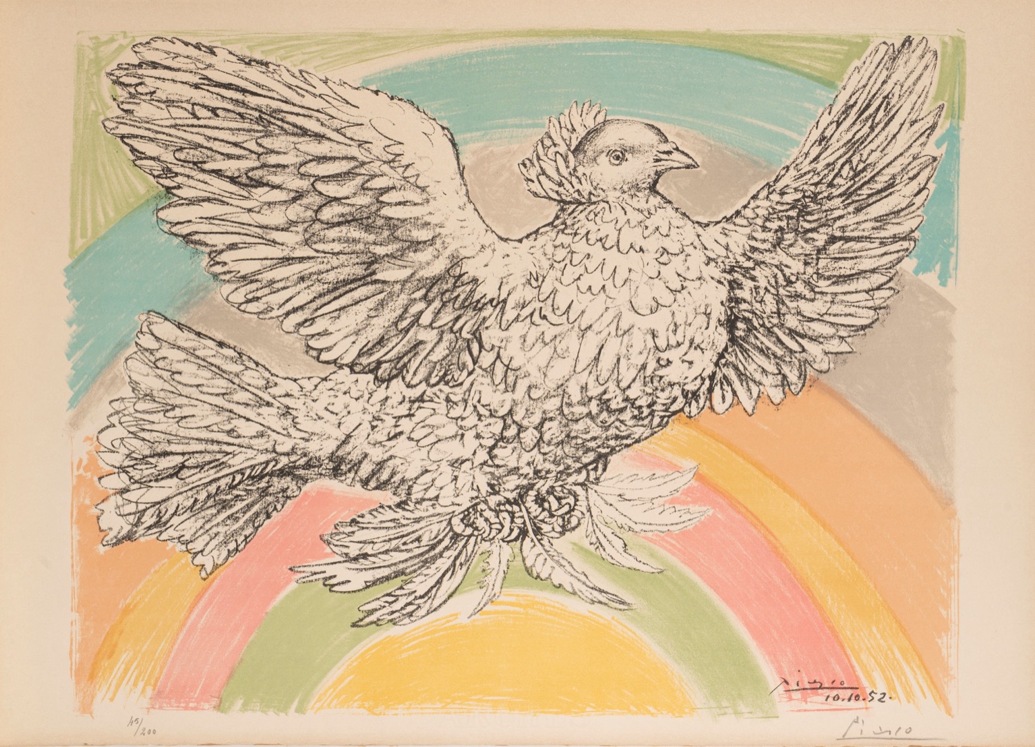 After Pablo Picasso - Colombe volant (à l'Arc-en-Ciel), 1952
