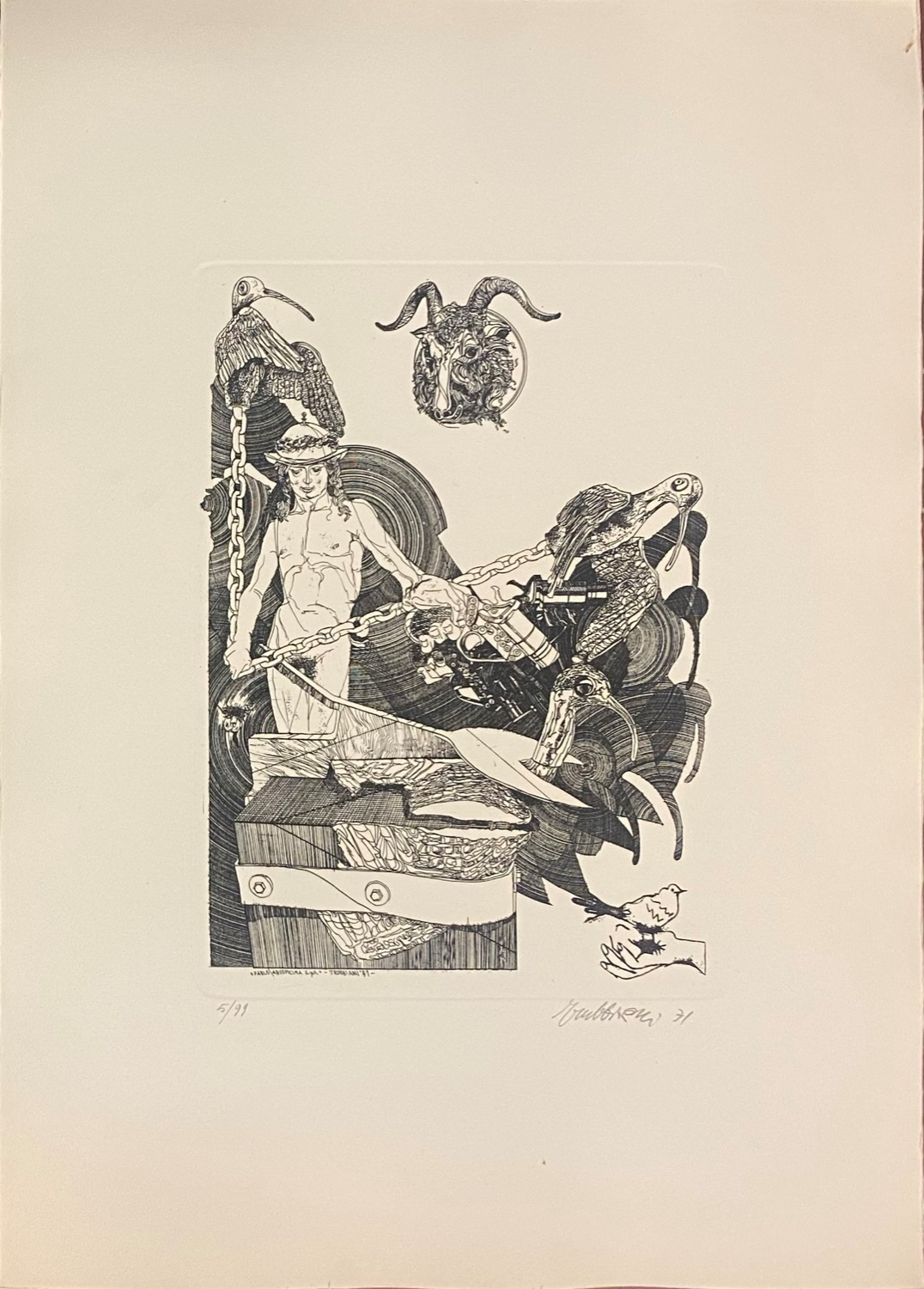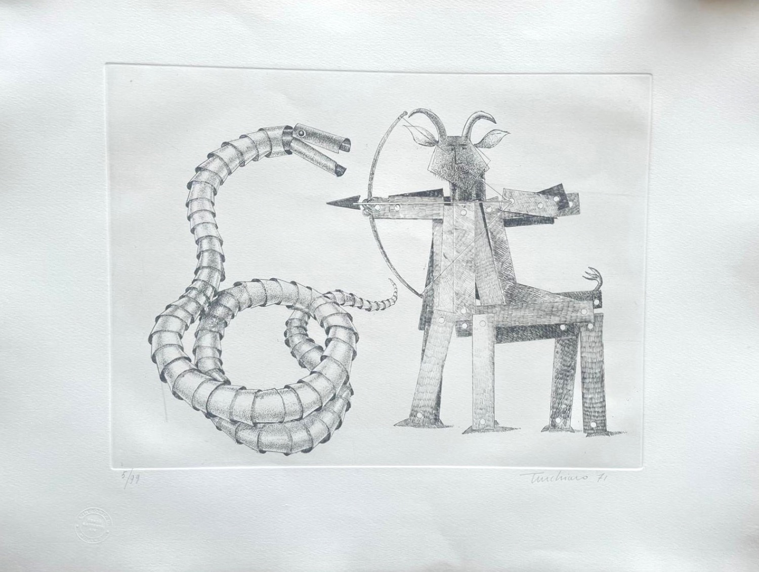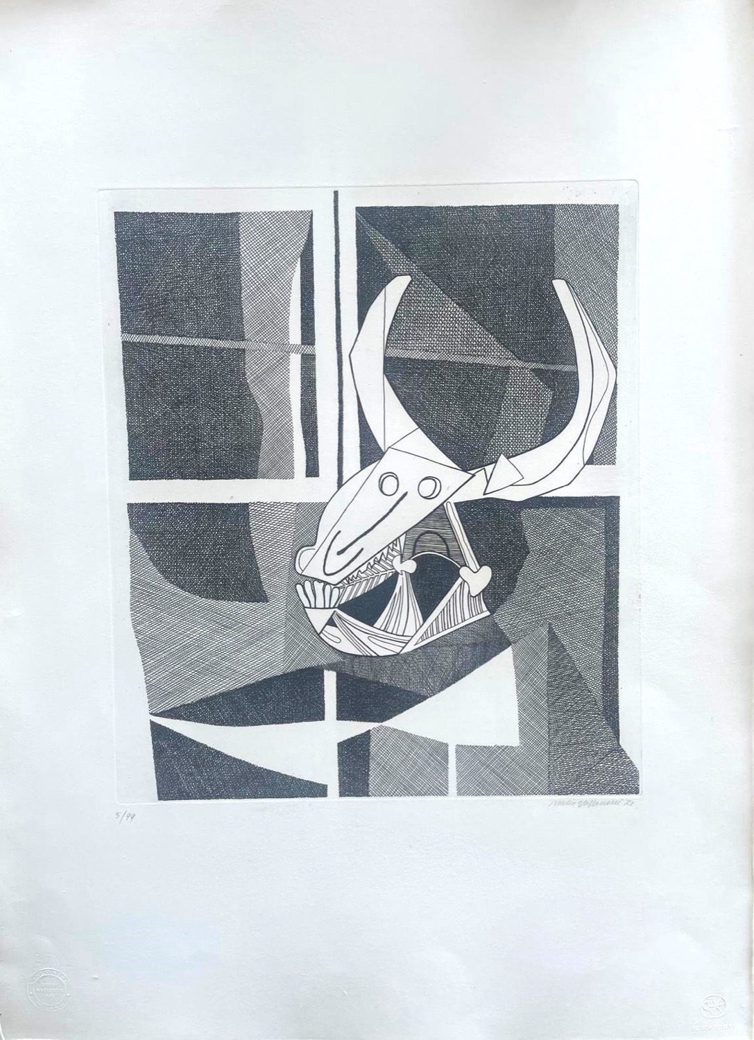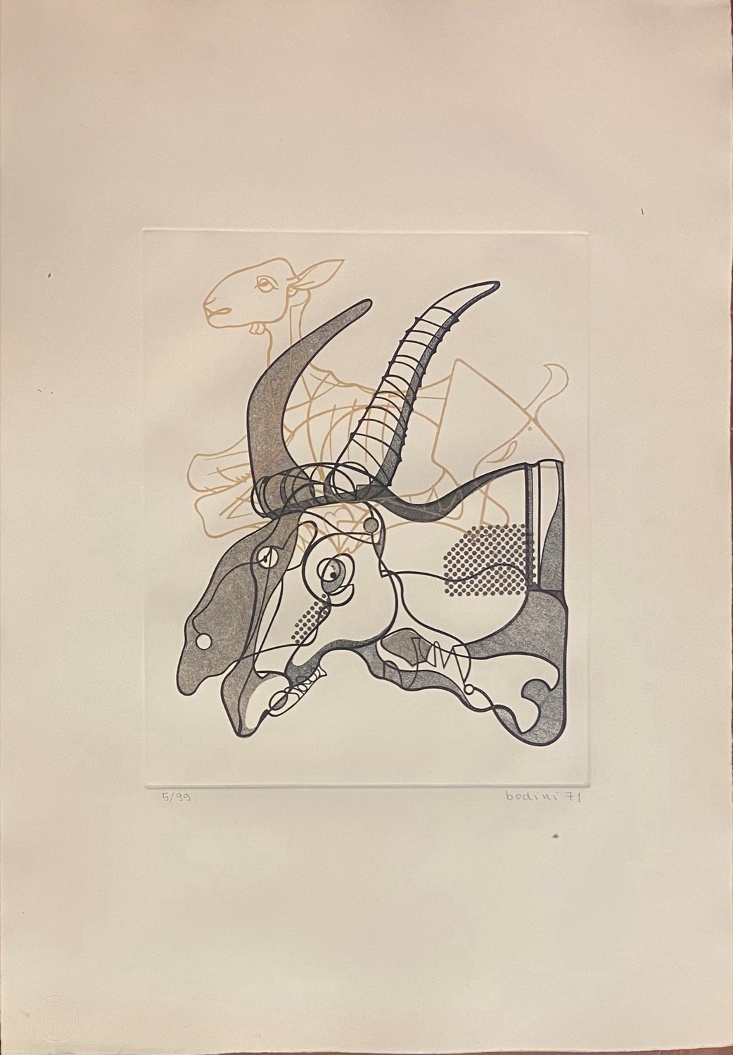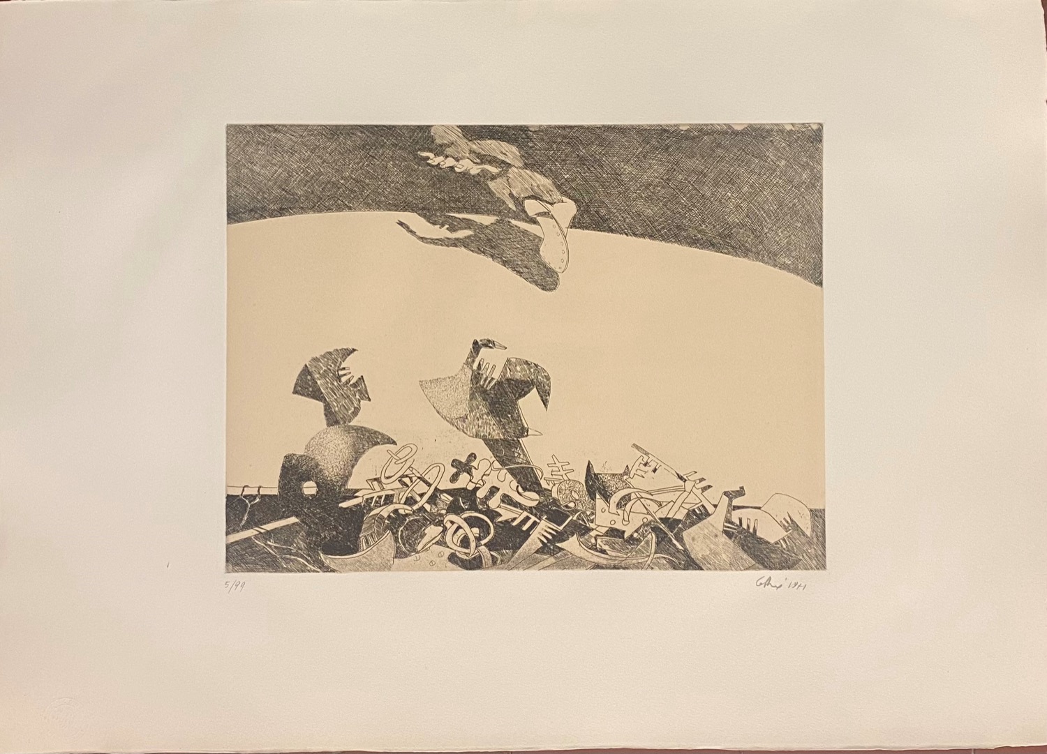 cartella completa contente 15 incisioni all'acquaforte di: Bodini, Calabria, Carmassi, Caruso, De Micheli, Guccione, Guerricchio, Guiotto, G. Pomodoro, Porzano, Steffanoni, Tornabuoni, Turchiaro, Trubbiano, Zigaina
