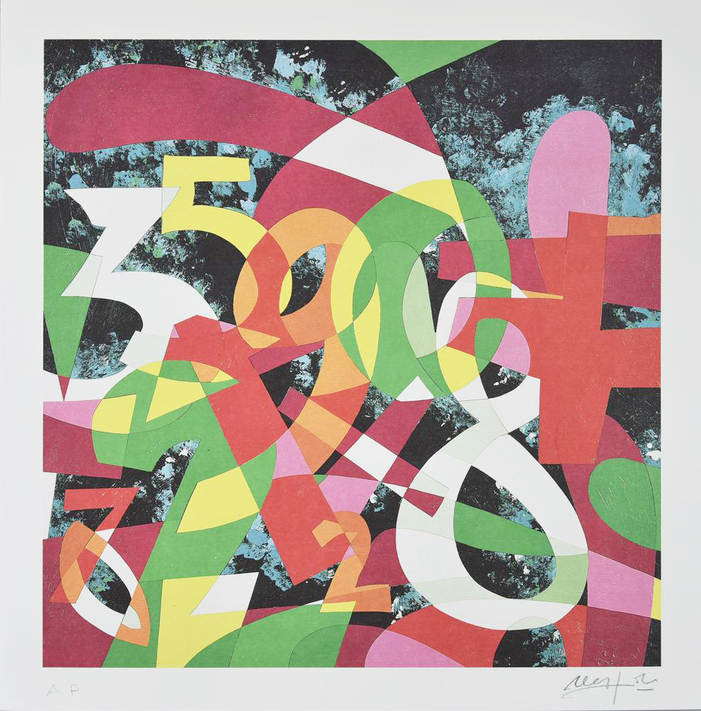 Ugo Nespolo INTRECCI litografia su carta acquerello, cm 48x48; es. A.P. firma...