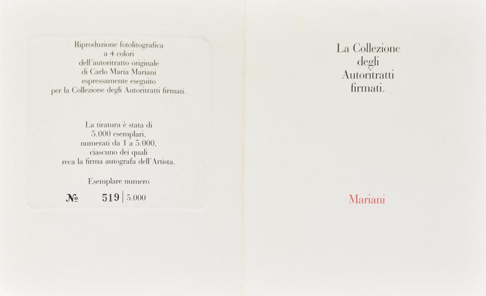 Lotto 19 | Carlo Maria Mariani AUTORITRATTO fotolitografia a 4 colori su cartoncino, cm...