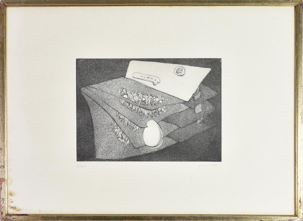 A. Pisani SENZA TITOLO, 1975 acquaforte, cm 24,5x34,5, su foglio cm 50x70;...