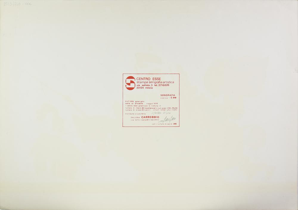 Gino Gini IPOTESI D'USO, 1976 serigrafia a quattro colori su carta, cm 50x70;...