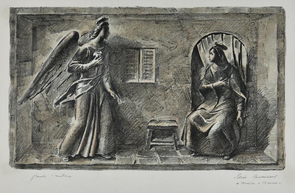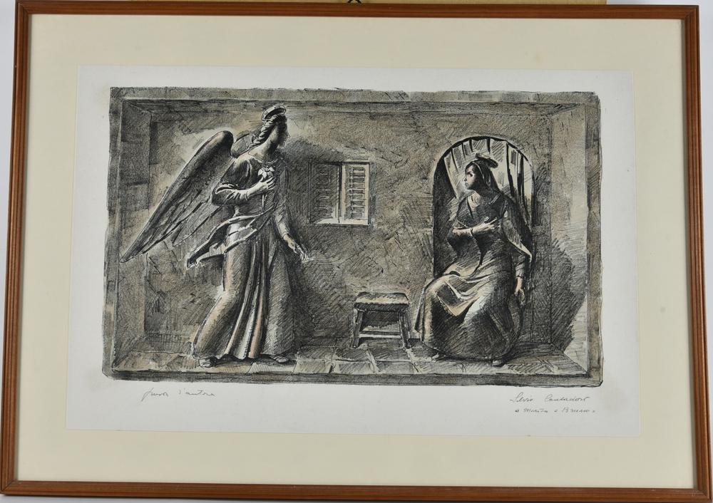 Lotto 129 | Silvio Consadori L'ANNUNCIAZIONE litografia su carta, cm 37x57; es. prova...
