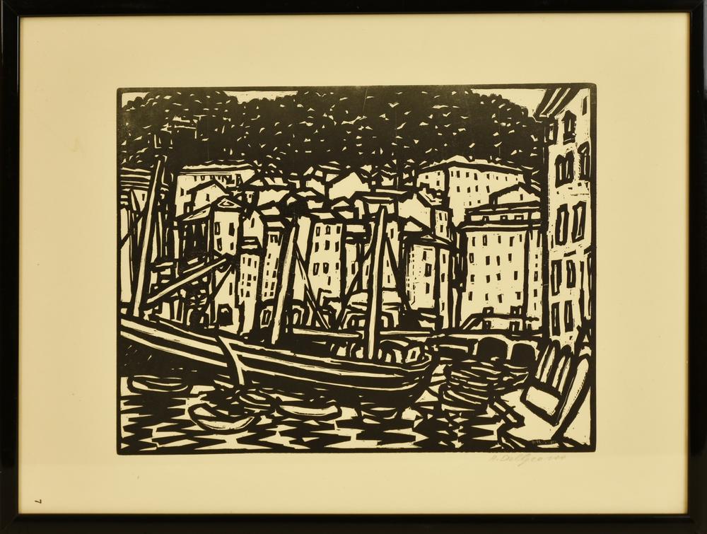 Lotto 141 | Amleto Del Grosso BARCHE SUL CANALE xilografia, cm 32x44 firma e firma in lastra