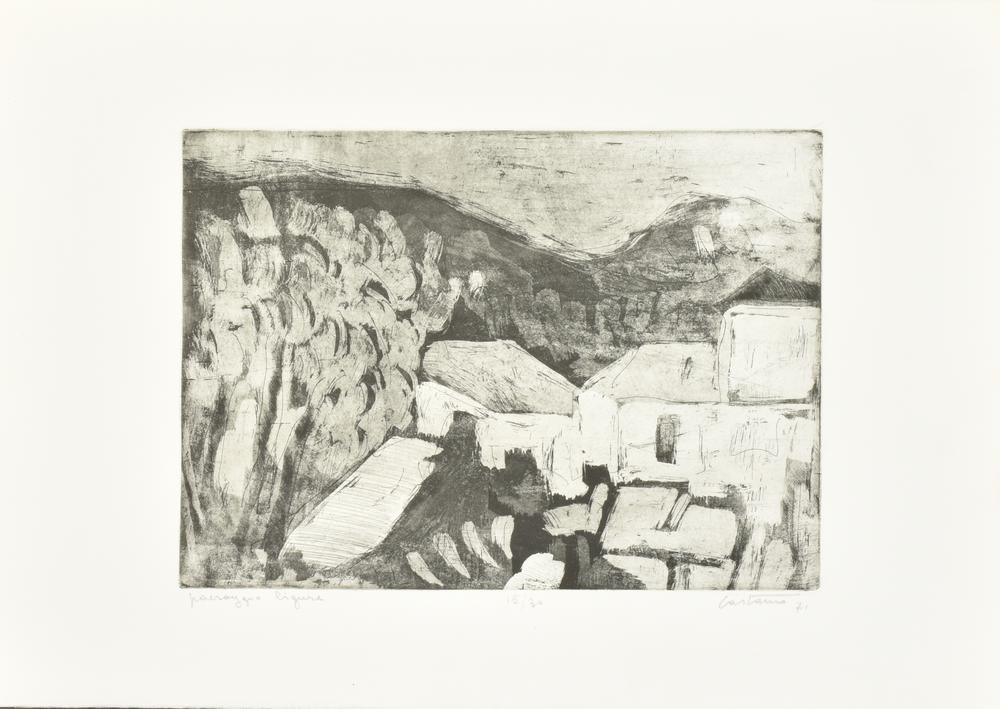 Aldo Castano PAESAGGIO LIGURE incisione su carta, battuta cm 22,5x3, su...