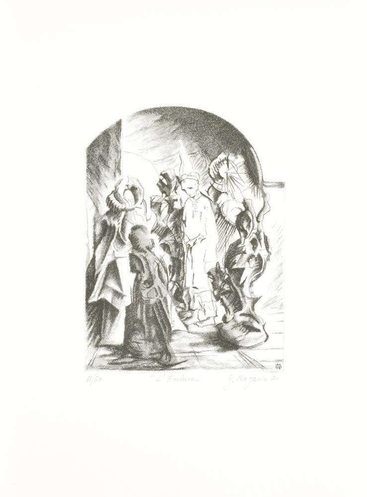 Gaudenzio Nazario L'ESCLUSO incisione su carta, battuta cm 24,5x18,5, su...