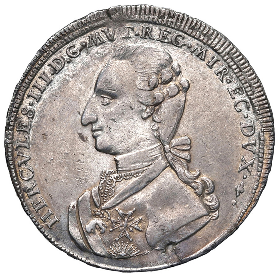 Lotto 11 | - MODENA 1780-1796 ERCOLE II D'ESTE 2 SCUDI 1782 MONT. 10, RARO DIFETTI MARGINALI MABELLISSIMO ESEMPLARE.