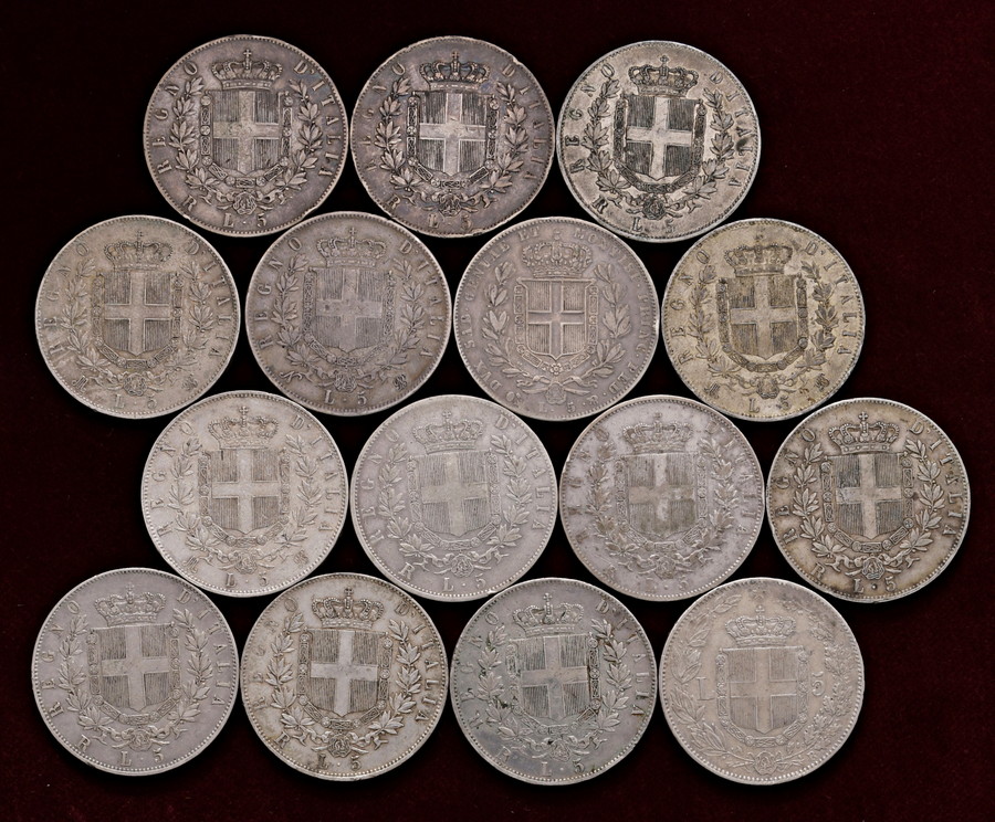 - LOTTO DI 15 SCUDONI REGNO DI SARDEGNA E REGNO D'ITALIA, DAL 1842 AL 1879.