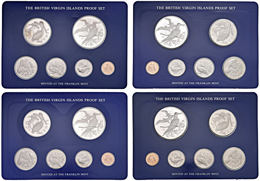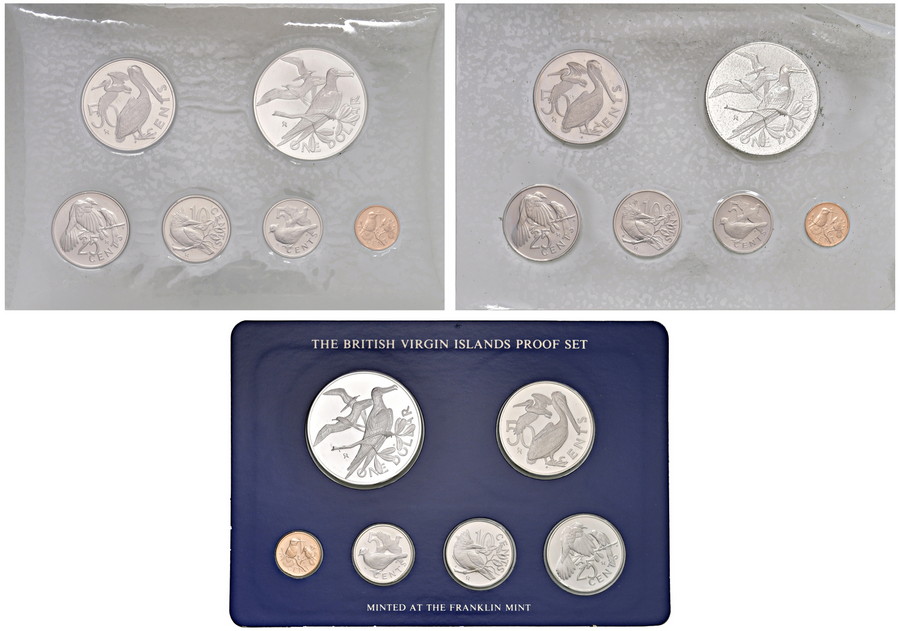 ISOLE VERGINI BRITANNICHE, N. 7 SERIE PROOF. . . Lotto composto da n. 7 serie proof, British Virgin Islands in cofanetto ufficiale. Monete da 1 cent a 1 dollaro, anni: