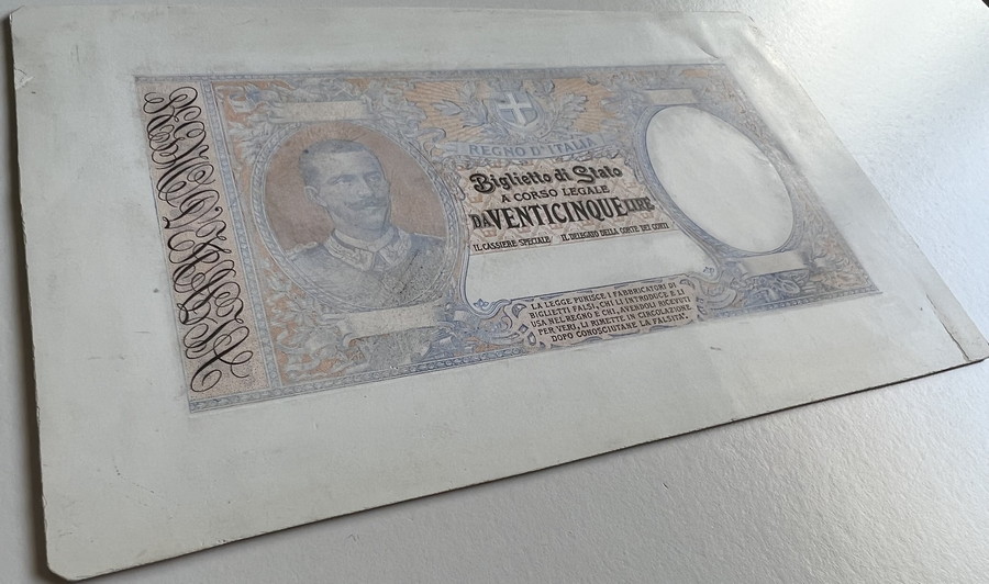 25 LIRE PROOF CARTONCINO BIGLIETTO STATO EFFIGE V. EMANUELE III 23/03/1902 SUP. . . Unghiate da maneggiamento. Tracce di sporco raccolto perlopiù al retro.