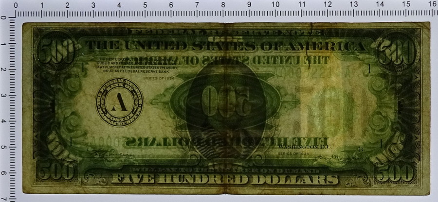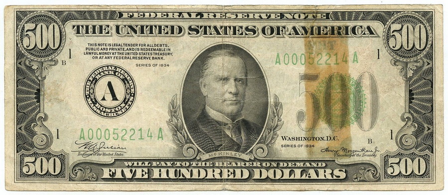 - 500 DOLLARS A BOSTON MASSACHUSETTS UNITED STATES OF AMERICA MCKINLEY 1934 MB/BB.