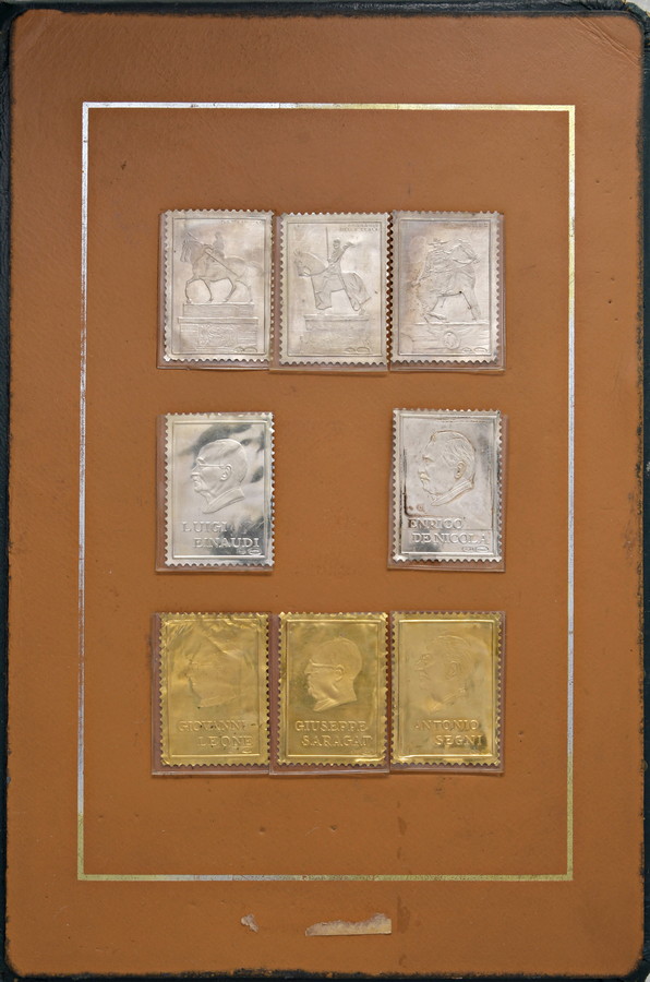 LOTTO DI FRANCOBOLLI SU LAMINA D'ORO E ARGENTO . . . 3 lamine in oro (GR. 2,3) e 5 lamine in argento.