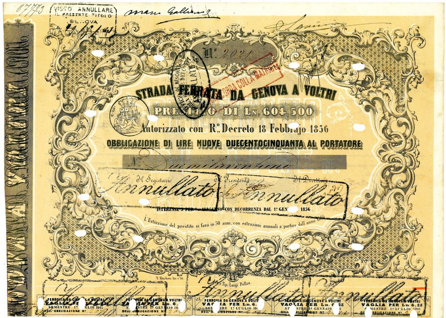 1856 - STRADA FERRATA DA GENOVA A VOLTRI - 1 OBBLIG. . .