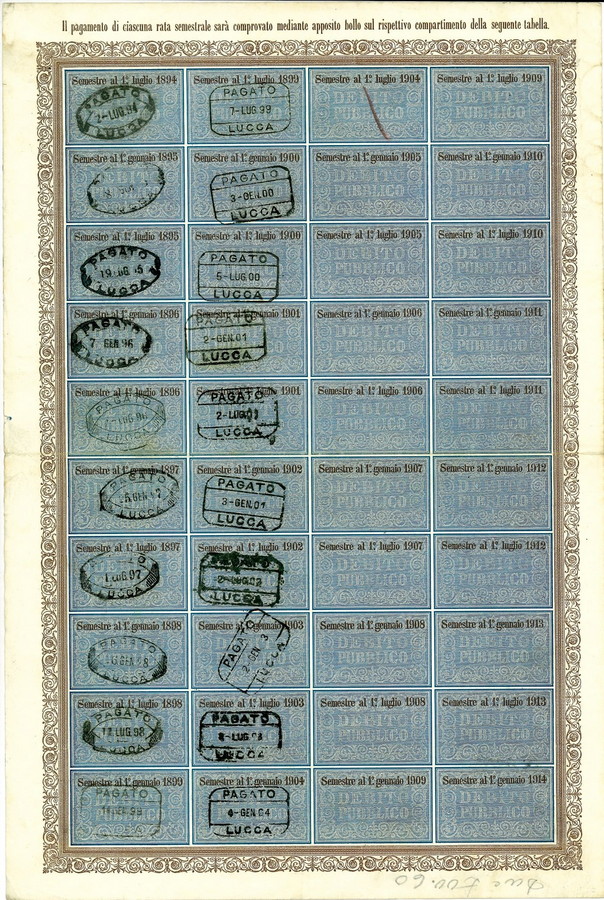1901 - DEBITO PUBBLICO REGNO D'ITALIA UMBERTO I 5% RENDITA LIRE 125 - ROMA. . .