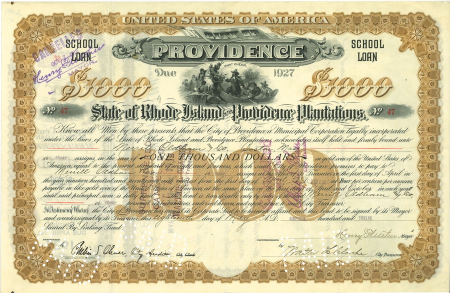 Precedente Lotto 328 Successivo Capitolium Art - Via Carlo Cattaneo 55, 25121 Brescia Asta 521 | NUMISMATICA IV Tornata, 319-419 mercoledì 7 maggio 2025 ore 19:00 (UTC +01:00) - 1912 - PROVIDENCE STATE OF RHODE ISLAND - 1000$. 1912 - PROVIDENCE STATE OF RHODE ISLAND - 1000$. . .